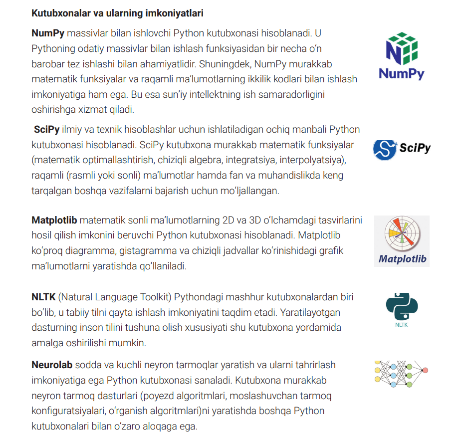 Pythonning sun’iy intellekt texnologiyalaridagi o‘rni